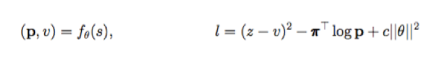 损失函数l包含三项:第一项是为了优化值函数的预测,第二项是为了优化落子概率的预测,第三项是为了防止过拟合。