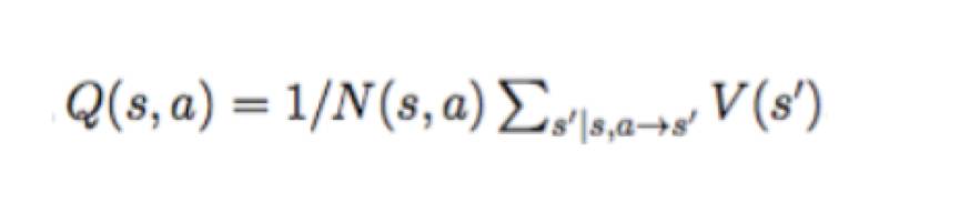 那么我们怎么才能够知道概率呢?一个方式是尝试很多次在布局s的情况下落子到位置a,然后用真正跳到布局s'的频数除以总共试的次数就是估计的概率了。不幸的是,这个方法对于仿真次数要求很高,不是很实用。