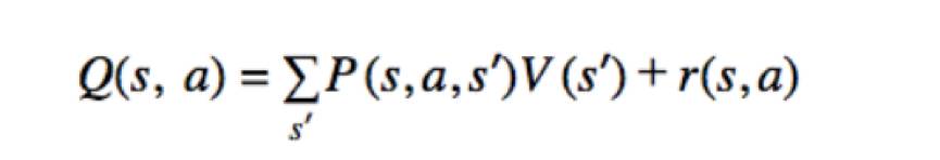其中P(s, a, s') 是在布局s的情况下,落子a处,对方落子之后,布局会变为s'的概率。r(s,a) 是这一步的收益(但是在AlphaGoZero里面实际是一个常量,只取决于最终的胜负)。这个公式的意思是,如果一个落子能够平均意义上将我的带到一个更好的布局,那么这个落子的平均期望收益就更好。如果我们有办法知道转化概率P(.,.,.)的话,那么就可以通过V来重建出Q。