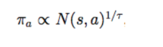 其中\pi_a是落子到位置a的概率,是一个参数,\tau用来指定温度。如果温度越高,落子越随机,温度越低落子越确定。