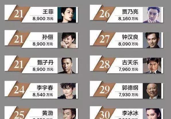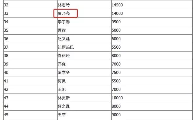 在福布斯2017年度中国明星排行榜,贾乃亮又以年收入1.4亿元位列排行榜第33位,紧随林志玲之后,排在众多超红明星之前。