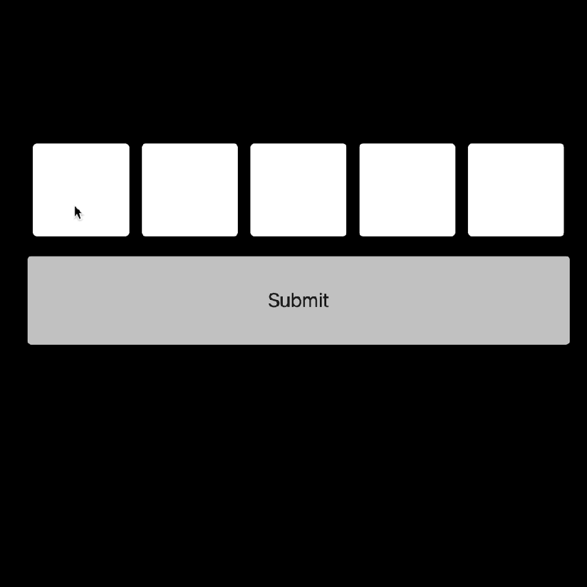描述字母输入框的样式,包括宽高、文字居中对齐、每个输入框有独立ID;输入时自动大写;再加一个确认按钮。