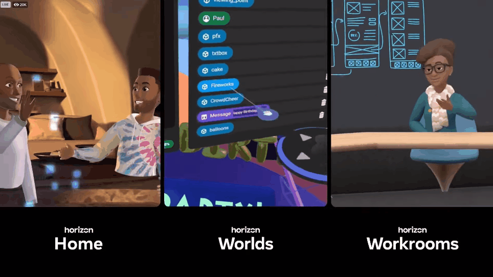 推出了一系列更新,包括Horizon Worlds、Horizon Homes、Horizon Workrooms、Messenger VR和fitness VR,用户可以在这些平台上创建虚拟世界、会议室和自己设计的家庭空间。
