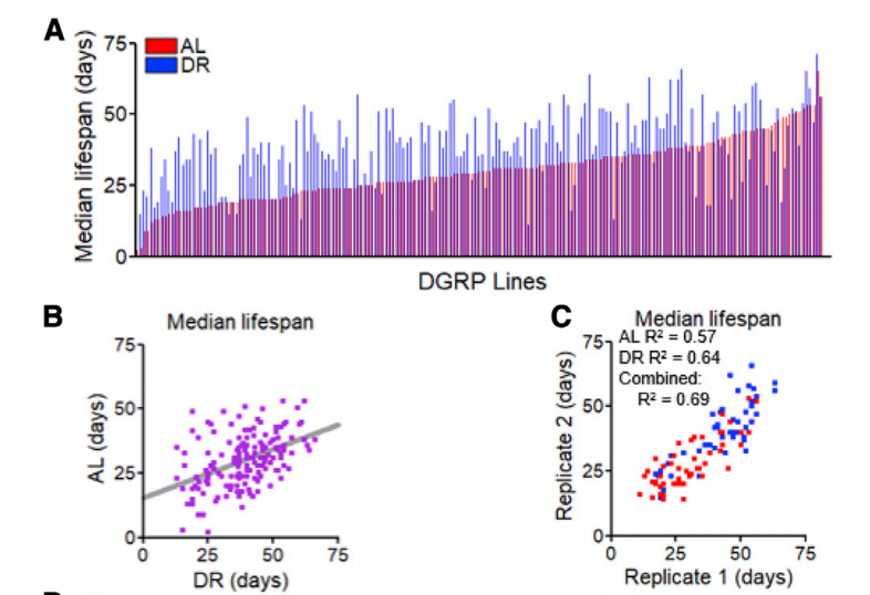 在现代社会,随着社会和经济的发展,国民生活质量水平稳步上升,人们的健康和寿命也得到增长。在当下,运动、健身以及均衡饮食等健康理念已成为共识,这些科学的健康理念也指导我们积极追求着健康的生活方式。不知何时起,吃饭只吃“七分饱”,节制饮食成为了时下备受追捧的生活方式之一,不少人甚至将其奉为健康箴言。2019年10月,Nature 子刊 Nature Metabolism杂志发表的一项研究也表明,成年期限制饮食,能够延长寿命。节食真的这么神奇吗? 近日,美国巴克老龄化研究所的研究人员在 Cell 子刊 Current Biology 杂志上发表了题为:GWAS for Lifespan and Decline in Climbing Ability in Flies upon Dietary Restriction Reveal decima as a Mediator of Insulin-like Peptide Production 的研究论文。此项研究对节制饮食可以延长寿命以及健康寿命的观点发起质疑。研究人员基于对160种不同遗传品系的果蝇进行统计分析发现:在节制饮食条件下,13%的果蝇品系生命力更强,但死亡更快;5%的果蝇品系寿命更长,但健康寿命更短。近年来,许多研究表明饮食限制可以有效延长寿命,并延缓跨物种的衰老相关疾病。对此,在衰老研究领域的一个基本假设是,饮食限制也可以通过类似的机制提高寿命和活动能力。然而,值得注意的是,这些研究并没有在不同的遗传背景下进行严格的测试。此外,在自然种群中,导致寿命延长或年龄相关功能下降的营养关联基因仍未得到充分研究。为了解决这个问题,在此项研究中,研究人员测量了160种不同遗传品系的果蝇的营养依赖的寿命变化和年龄相关的攀爬能力下降。他们发现,饮食限制延长了果蝇寿命,延缓了它们与年龄相关的攀爬能力下降,但这些特性在个体品种之间缺乏相关性,这表明不同的遗传因素独立调节这些特性,而基因型决定了对饮食的反应。通过统计分析,研究小组报告称:在饮食限制条件下,97%的果蝇品系表现出寿命或健康寿命的延长。但只有50%的品系对两者都表现出积极的反应,13%的品系生命力更强,但死亡更快;5%的品系寿命更长,但健康寿命更短,其余32%的品系对寿命或健康寿命没有明显变化,或者对两者都有负面反应。紧接着,通过全基因组关联分析(GWAS),研究人员在果蝇中发现了许多先前不知道的对饮食有反应、影响寿命或攀爬能力的基因。他们证实decima基因可以改变寿命,daedalus基因可以影响与年龄相关的攀爬能力下降。进一步研究发现,decima可以影响sNPF信号通路下游GABA受体神经元的胰岛素样肽转录。有趣的是,这两个基因仅对寿命(decima基因)或活动能力(daedalus基因)产生独立的影响,这表明这些与年龄相关的特征可以通过不同的机制进行调节。延长寿命的研究发现往往会被媒体大肆宣传,夸大成治疗所有与年龄有关的疾病的方法,这项研究提醒人们需要注意到,遗传基因背景可能会对他们如何应对干预产生重大影响。总而言之,寿命以及健康寿命是一些受到复杂因素影响的特征,每个人的遗传背景不尽相同,因此,即便完全相同的生活方式也可能会产生截然不同的效果。在此也提醒大家,追求健康的生活方式更应该从自身出发,结合自身特点,切勿盲从。参考链接:https://www.nature.com/articles/s42255-019-0121-0https://doi.org/10.1016/j.cub.2020.05.020