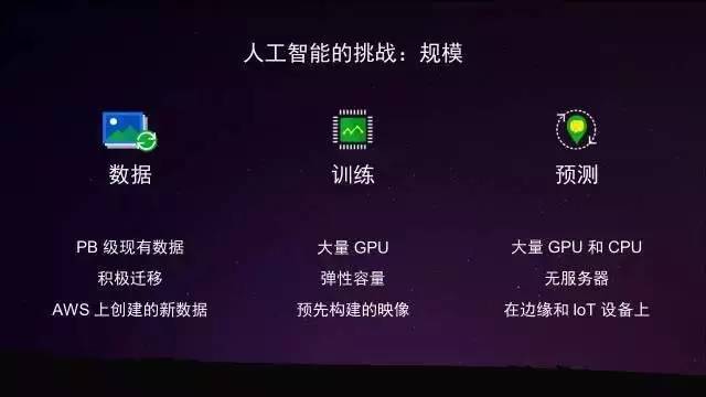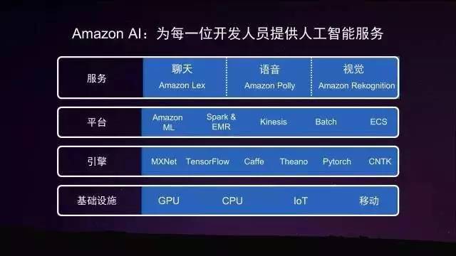 7 月 27 日,2017 AWS 技术峰会北京站在国家会议中心举行,会上,容永康与亚马逊首席技术执行官 Werner Vogels 对 AWS 的业务进行了梳理,众多 AWS 的客户和合作伙伴也分享了他们使用 AWS 云服务的经验。人工智能作为一个对云计算有巨大需求的领域,作为 AWS 眼中未来十年的大趋势之一和近期投入大量资源的方向,也引发了广泛的关注和讨论。AWS 为人工智能领域提供了哪些产品?其优势体现在哪些方面?机器之能在采访了相关负责人及行业用户之后结合演讲内容进行了以下梳理。