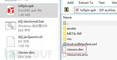 1、拿到APK后首先进行反编译,用winrar打开apk,解压出class.dex