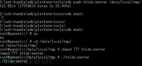 2、下载完成并解压,修改文件名为frida-server,并使用adb上传到模拟器中并运行,执行以下命令