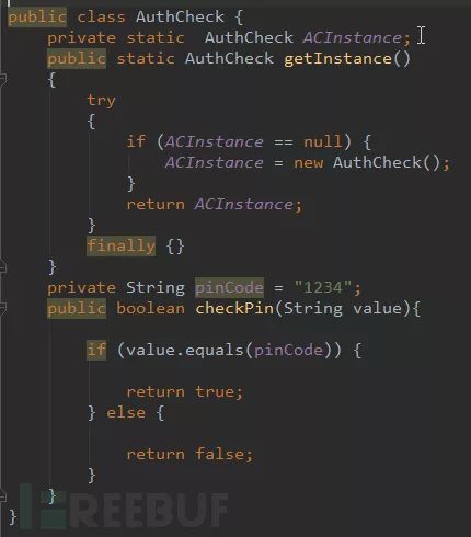 5、创建类AuthCheck ,checkPin用来校验pin码是否正确,并且根据结果返回布尔值