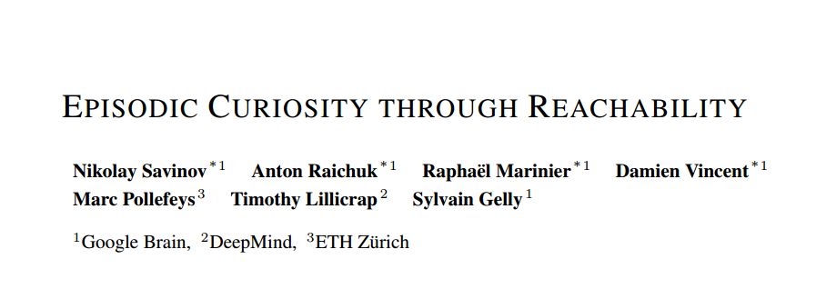 论文:Episodic Curiosity through Reachability