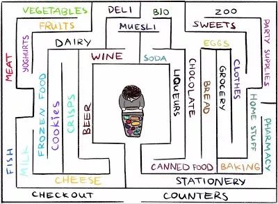 你在超市中漫步时会尝试预测(「现在我在肉类区,拐过这个弯应该是鱼类区,这家超市里这两类区域往往是挨着的)。如果你的预测错误,则你会感到惊讶(「天啊,竟然是蔬菜区。真是没想到!)并因此得到奖励。这会使你未来更有动力四处晃悠,探索新的区域,只为看看自己的期望与现实是否相符(希望能够偶遇奶酪)。