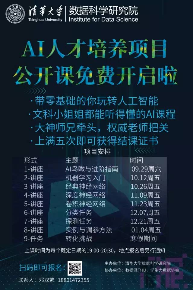 欢迎你来参加由清华数据科学研究院主办的“AI青年人才培养项目”