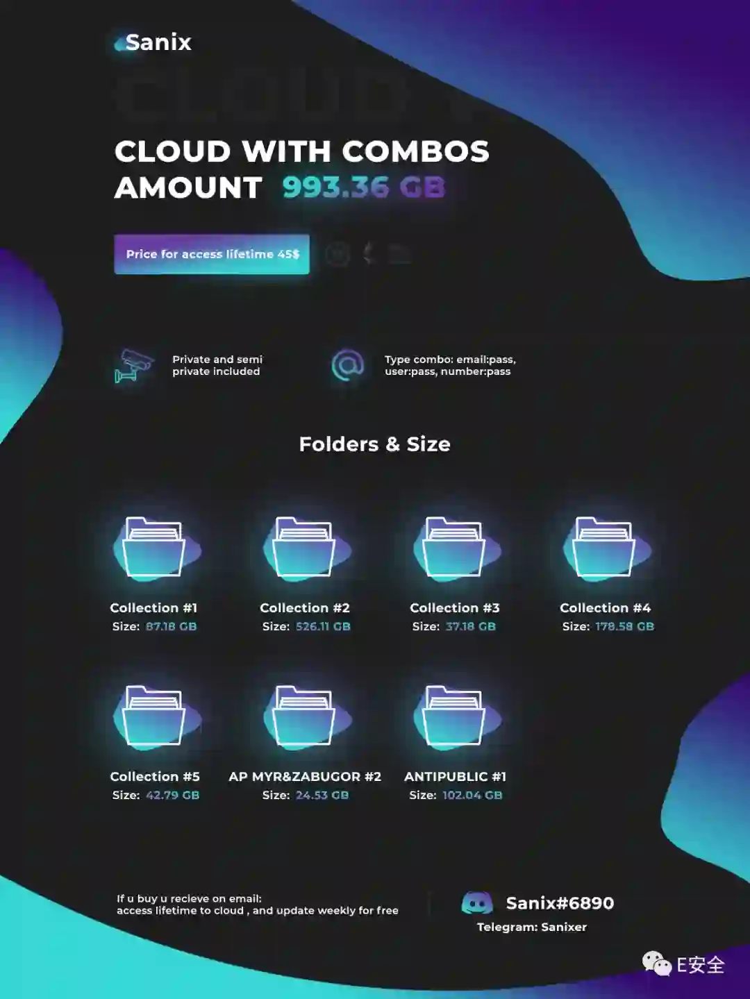 国际网络安全研究所的数字取证专家称,名为sanixer的卖家以40美元的价格出售电子邮件密码合集。根据cracked.to网站的数据,购买了这个数据合集的人数非常多。一些公司或个人购买这些数据应该是用于制造垃圾邮件。