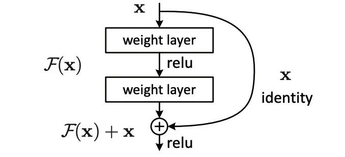 面对海量 SKU,采用 Resnet50 深度学习网络进行模型训练,该网络结构由何凯明团队在 2015 年提出,一经问世就引起轰动,成为近年来最经典的特征提取网络结构之一,其亮点在于残差网络结构(如下图所示):