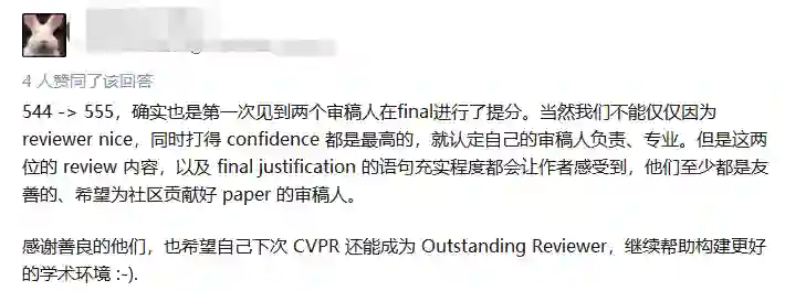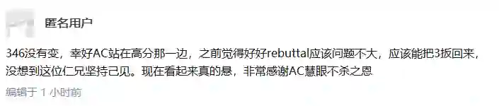 例如这位网友,表示经过Rebuttal第一次见到两个审稿人在final上进行了提分,也感受到了友善。