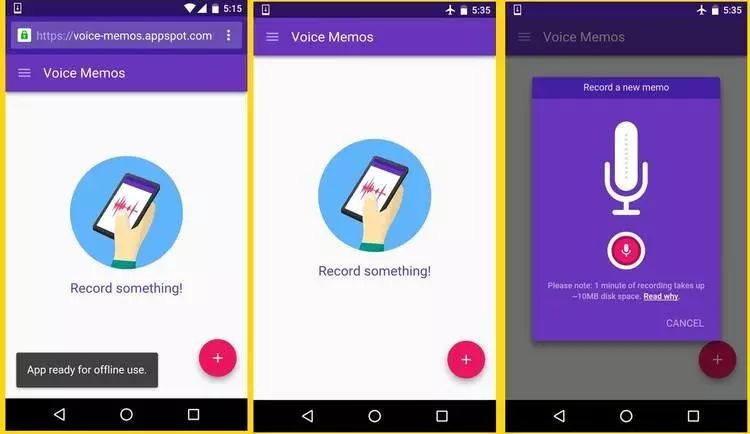在开发者文档示例中,利用这项离线能力,语音备忘录不需要网络也能记录声音了。