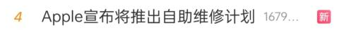 去年 11 月,苹果“破天荒”地宣布了一项计划“自助维修”,彼时该消息火速登上微博热搜。