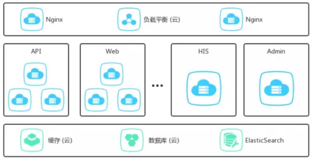 不过杏仁医生很幸运,正好赶上了公有云的成熟,所以一开始就是基于公有云搭建的。杏仁医生最早期的架构如下: