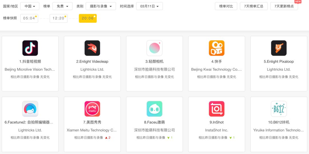 近期,在iOS商店的“摄影与录像”排行榜中,前十出现了多款来自于同一家公司的App。