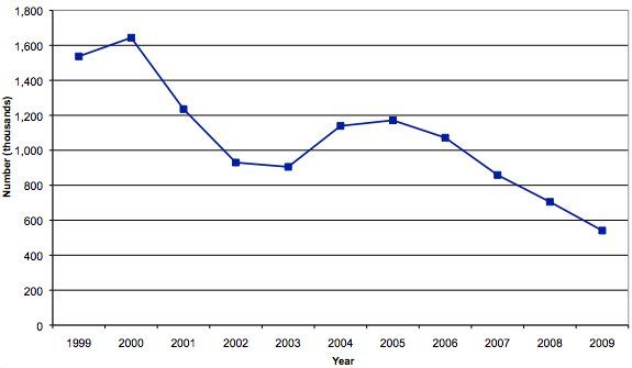 Figure 2. Southwest Border Apprehensions, FY 1999 to FY 2009