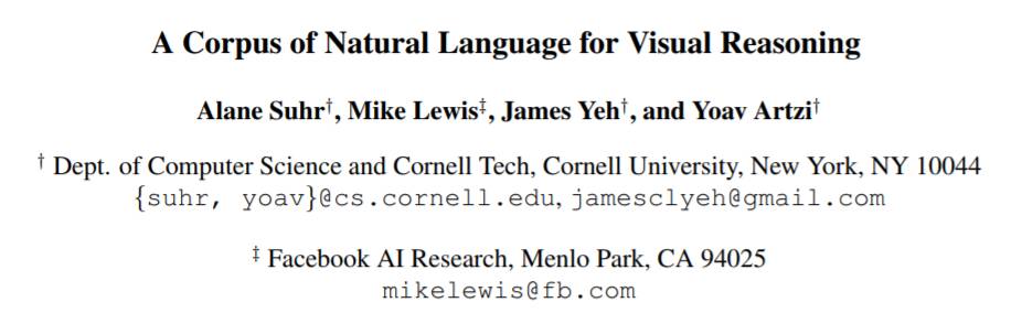 论文作者:Alane Suhr, Mike Lewis, James Yeh, Yoav Artzi