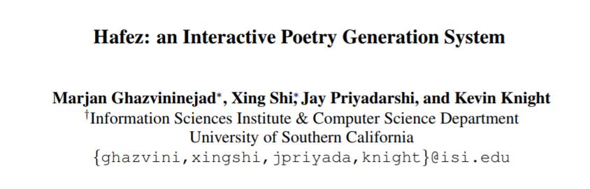 论文作者:Marjan Ghazvininejad, Xing Shi, Jay Priyadarshi, Kevin Knight