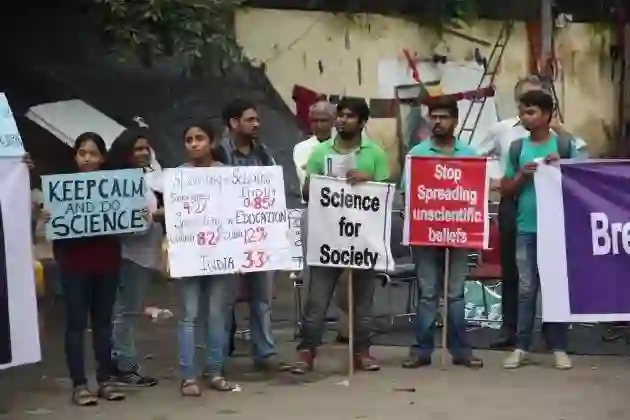8月,科学家参加印度的科学游行,抗议反科学信仰、迷信和神话的传播。