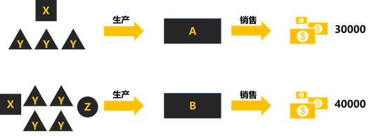 小王的公司是一个化学溶剂公司,主要生产溶剂A与溶剂B。其中生产1吨的溶剂A需要1吨的原料X以及3吨的原料Y,生产一吨的溶剂B则需要1吨的原料X,4吨的原料Y以及1吨的原料Z。现在知道1吨溶剂A的利润是30000,而1吨溶剂B的利润是40000。