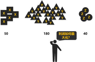 由于公司规模的原因,每月只能够处理50吨X,180吨Y以及40吨Z。在此限制条件下,现在应该如何分配每月的生产计划,才能使到工厂的利润达到最大?