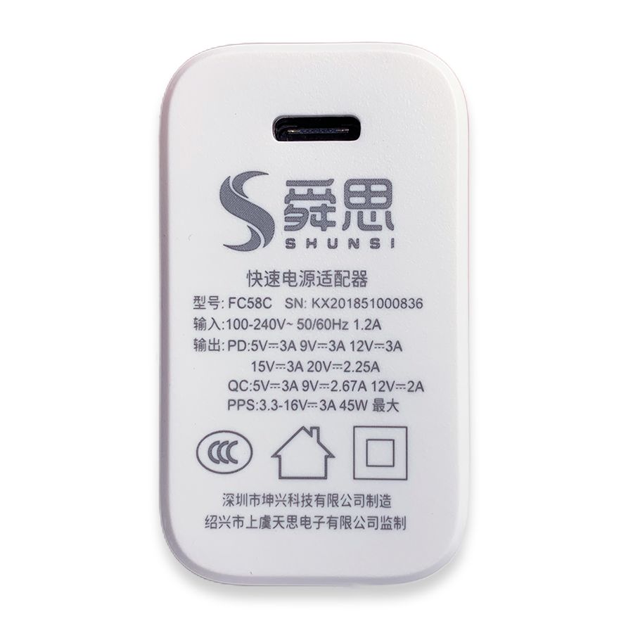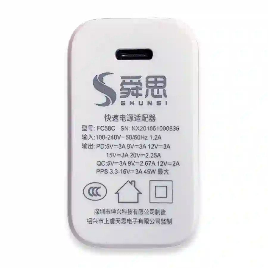 这款充电头的优点,首先在于功率高,支持的协议多,包括 45W 的 PD2.0,3.3-16V 3A 的 PPS,最大 12V 的 QC3.0,以及最大 9V 的华为 FCP,PD 还有 15V 和 20V 档位,手机、平板、笔记本都 OK,通用性非常好;