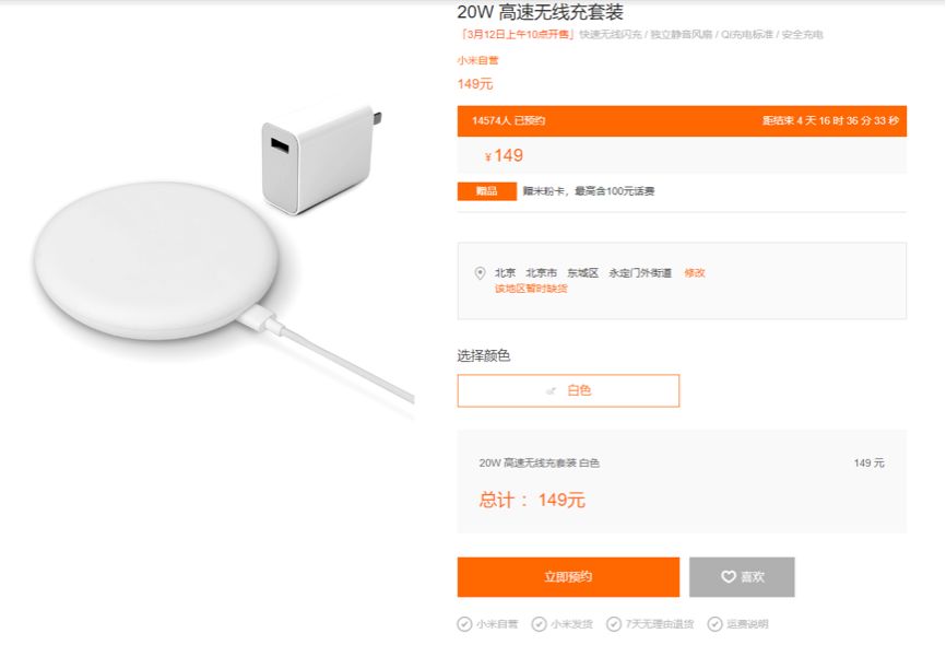 其二就是不好买,小米目前还没有在任何渠道上开卖这款充电头,只有购买 149 块钱的无线充电套装版时会赠送,而且这款无线充电板还在抢购状态……好吧,打扰了。
