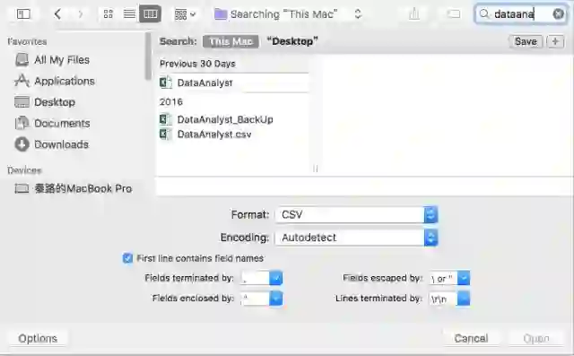 给表取个名字,载入后,就将CSV成功导入到数据库了,能够进行数据查询的操作。