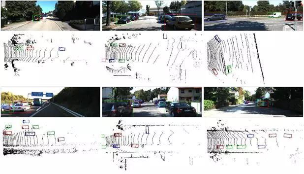 4、KITTI上的定性检测结果如图4所示。即便是在汽车很远或者严重遮挡的场景,该模型也能很好地检测到汽车。