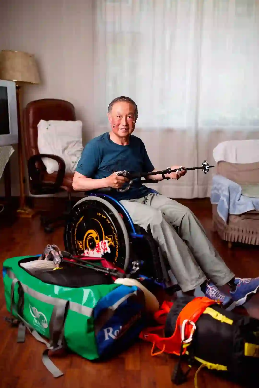他疼得路都走不动,只有一步一步往前挪。下撤两天后,柯庆峰在大本营接到他们还有一小时到达的消息,最后却等了好几小时。团队和夏登平都忙去迎接,远远就看到一个卸掉假肢后只有1.21米的老人瘫坐在石头上,低垂着残缺的小腿。他们觉得肯定是他,但“越走近越不像,因为脸已经冻变形了”。