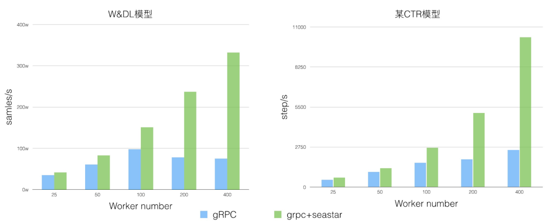 针对原生 TensorFlow 中进行超大规模稀疏训练时分布式扩展性不足的问题,Alibaba PAI 团队为 TensorFlow 社区贡献了 grpc+seastar 及 FuseRecv 两个功能。在一些典型的业务场景下,大大提升了稀疏模型训练的分布式扩展性。TensorFlow 社区内部分同学试用了这两个功能,在 400 worker 规模下能够提升 2-4 倍。