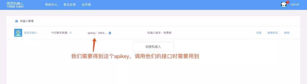 我会在项目代码中给一个默认的apikey,让大家不用申请机器人就可以直接运行项目,但是猪哥还是建议同学自己去申请,因为这个默认的apikey有调用次数限制,况且这算是一笔免费的财富呢!
