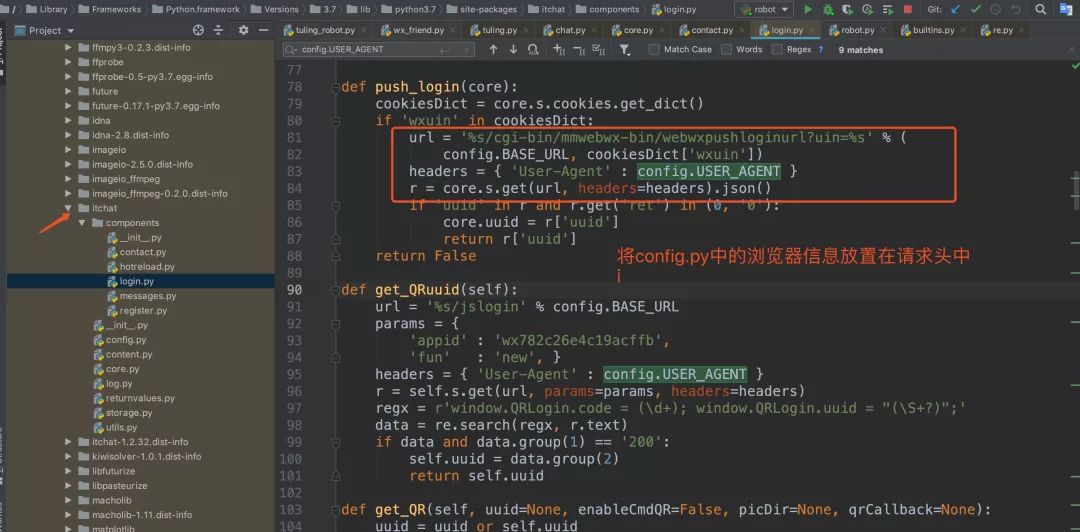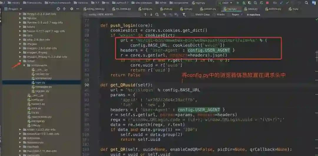 我相信有不少同学使用过微信的网页版,而wxpy(底层使用itchat)库就是模拟登录网页端,然后调用微信的api实现操作的,我们可以查看itchat源码发现。