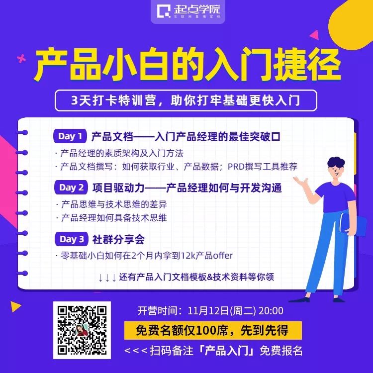 为了帮助产品小白更高效入门,起点学院与惠买集团产品总监@陈滨淋、前京东高级产品经理@唐韧,联合发起《产品小白的入门捷径》体验营。