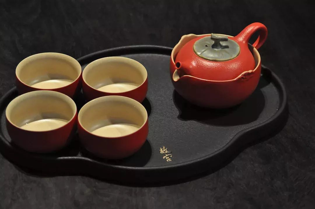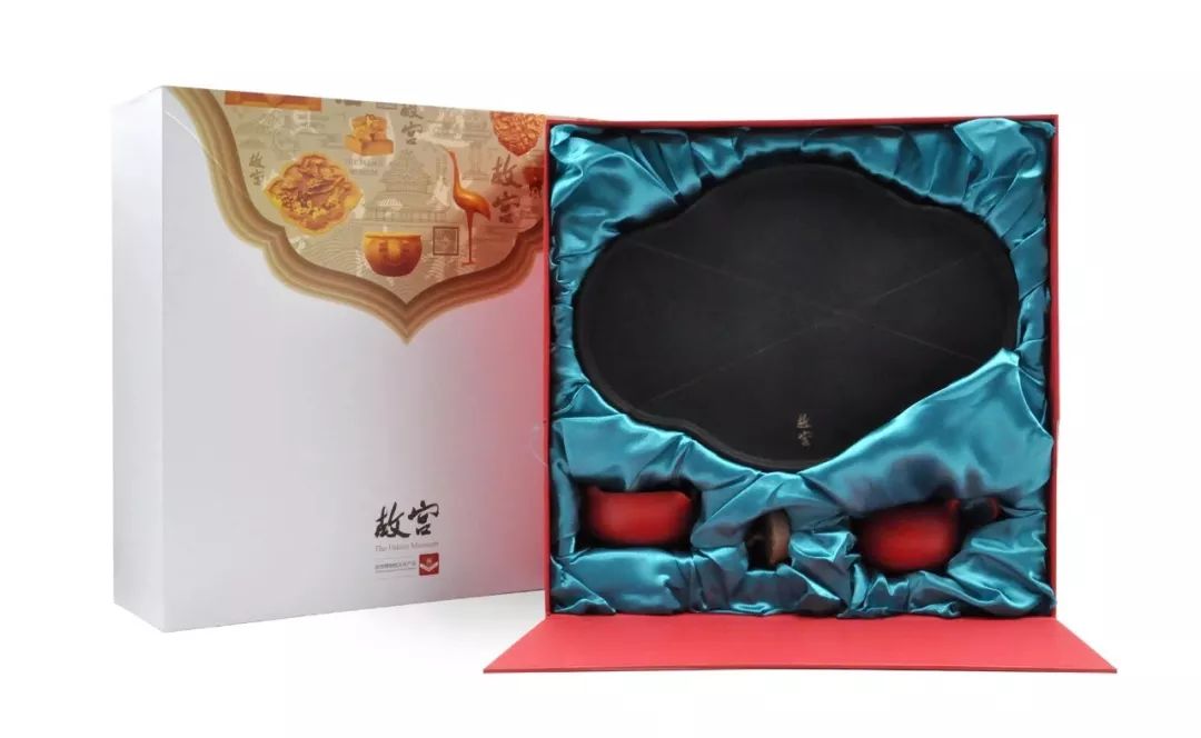 采用红、黑色调,为中国古代漆器色彩的基本色。茶盘的黑色尊贵、持重,有凹凸“故宫”字样印记。茶具的红色取于古代皇家宫墙装饰用色——朱漆釉,红黑辉映,中正大气。