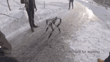 现在的DyRET已历经数个设计版本,最新一版技术最为成熟,能精确分辨出什么时候该迈哪条腿,并调整步伐长度,在寒冰、岩石等地形表面上自如行走。