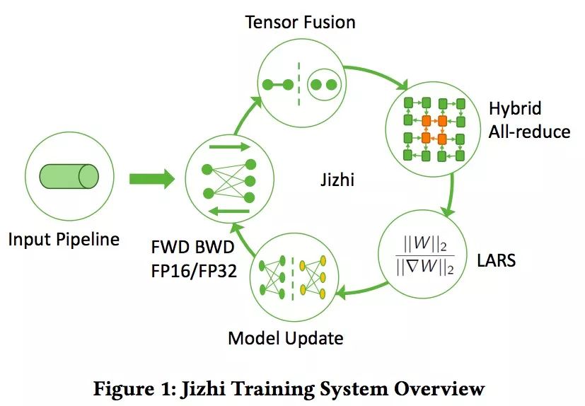 这篇论文为为密集GPU集群构建了一个高度可扩展的深度学习训练系统,它很好地解决了上述两个问题,下图是它结构概览: