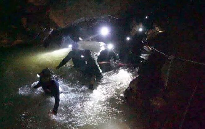 连日的暴雨洪水使洞穴某些区域已漫顶