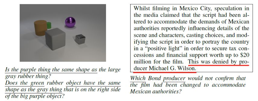 (2) 如果context是图片,例如CLEVR数据集,那么在预训练的RESNet上fine tuning得到图片的表示,对所有候选answer分类得到每个answer出现的概率。