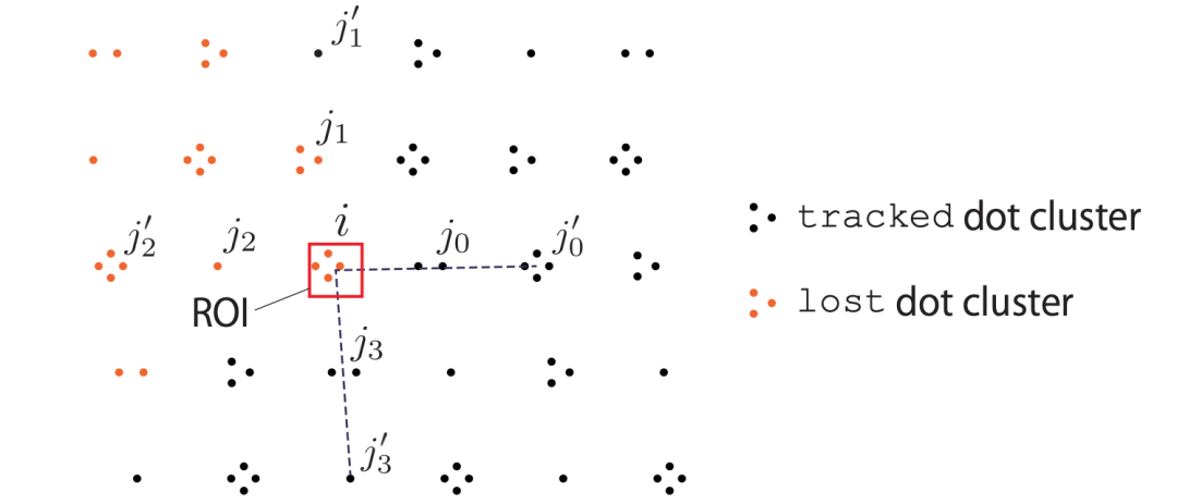 并且为了增强逐帧跟踪的鲁棒性,相邻的点簇,点的数量不会相同。