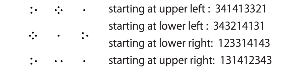 点的数量是随机且排他分布的。识别是从p x p点簇(识别窗口)的四个角开始的。
