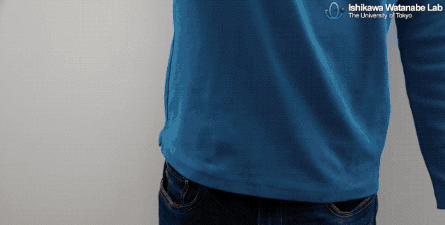 随着“3,2,1”的倒计时,衣服突然出现了色泽鲜明、纹理复杂的动态投影,依旧是任你拉扯,我如影随形。