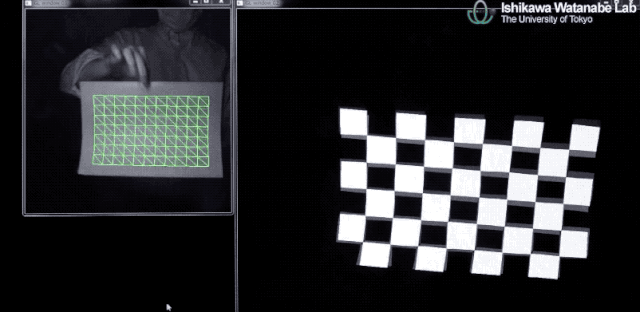 图像投影到一张纸上,无论让它怎么晃动,图像都会随着纸的变形同步发生变化。