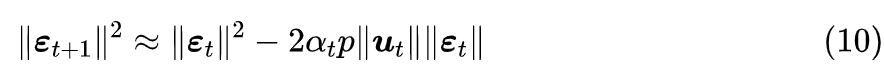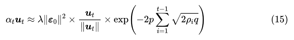 部分是一个衰减项,我们可以先不管它,所以更新量的模长由