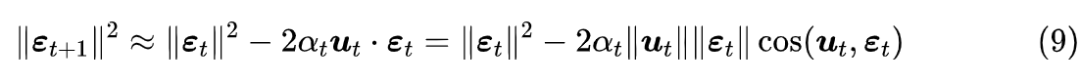 是当前时刻与目标的差异向量,两者一般来说没什么必然的相关性,于是我们可以近似认为它们是高维空间中两个随机向量。根据《n维空间下两个随机向量的夹角分布》[5] ,我们知道高维空间中两个随机向量几乎都是垂直的,于是