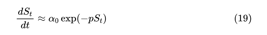 其实目前的结果已经适合编程实现了,只是参数 p 不好调罢了。为了进一步看出参数 p 是怎么影响衰减函数的,我们可以进一步求出