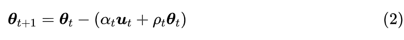 也就是说,在整个更新过程中,权重衰减带来的更新量始终要比目标相关的更新量高一阶,由于
